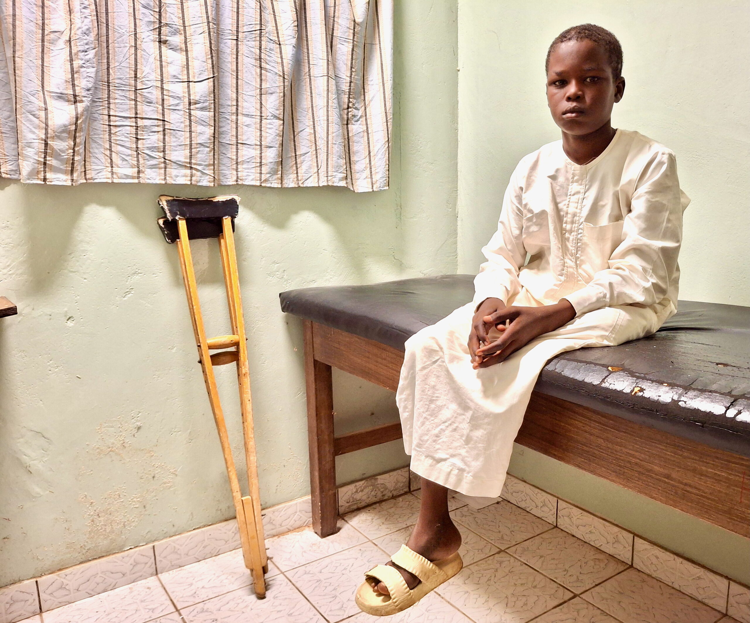 Before his family brought him to the Guinebor 2 Hospital, Tahir was facing a life where sitting was his only option. On top of the obvious limitations of this, only sitting would have led to issues with bone density, joint development, and circulation, amongst other problems.